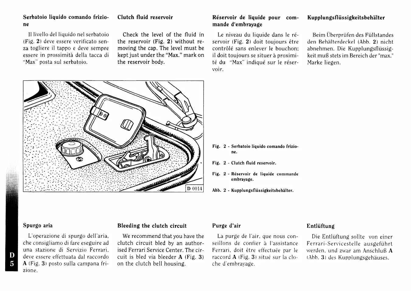 Ferrari F355 - Clutch Fluid Reservoir; Bleeding the Clutch Circuit