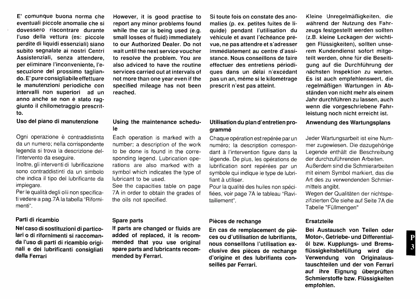 Ferrari F40 - Using the Maintenance Schedule; Spare Parts