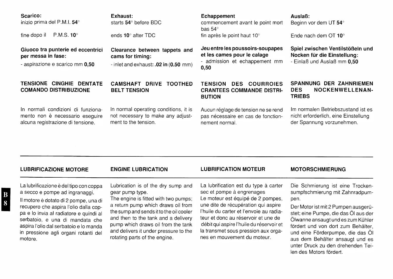Ferrari F40 - Engine Lubrication; Camshaft Drive Toothed Belt Tension