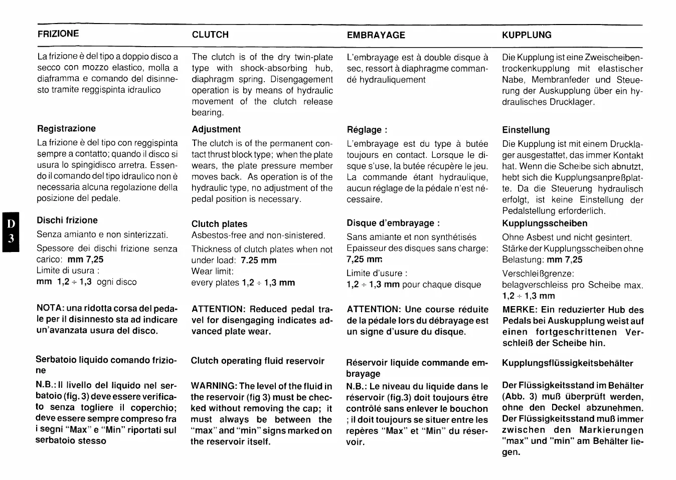 Ferrari F40 - Clutch Adjustment; Clutch Plates; Clutch Operating Fluid Reservoir