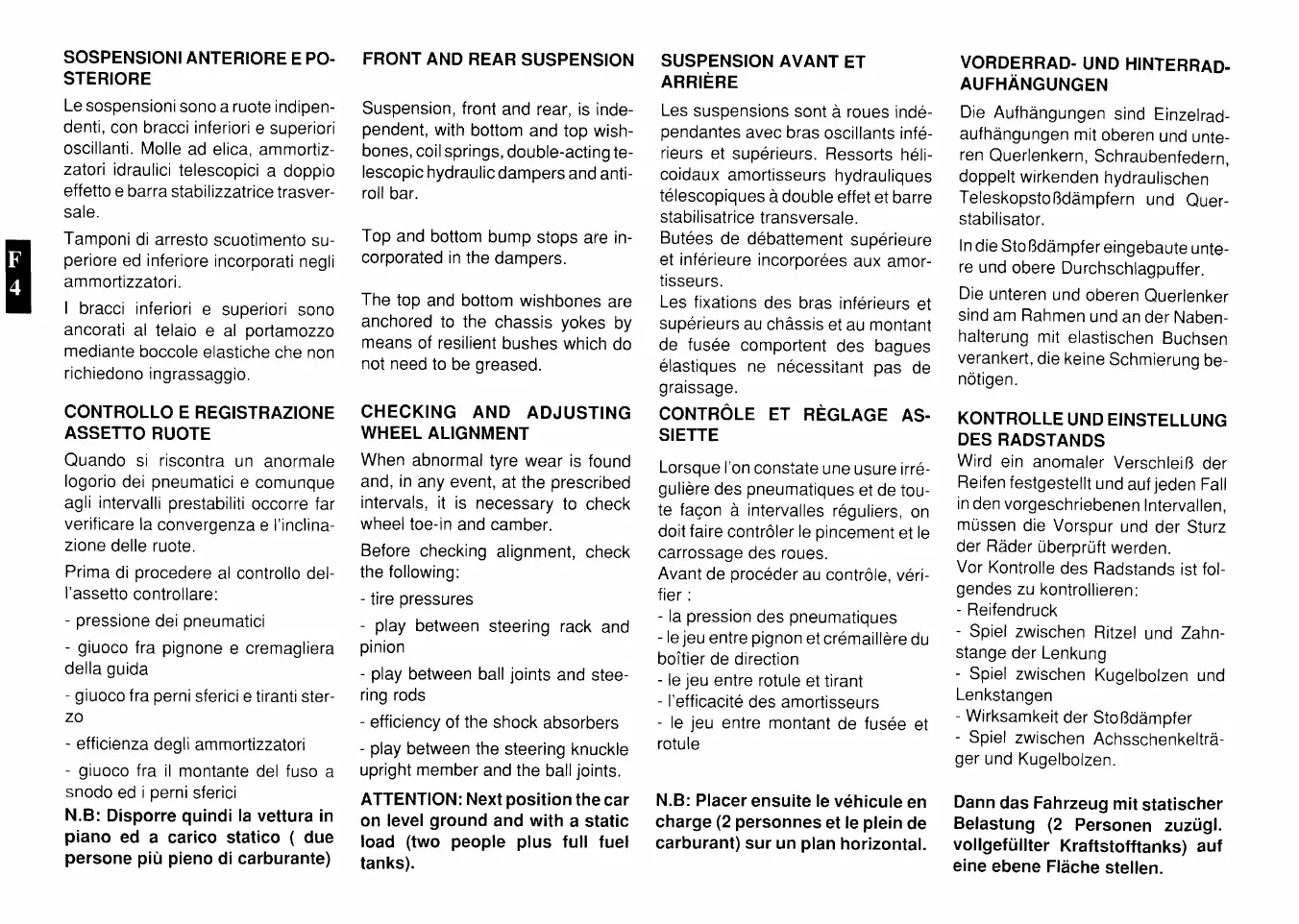 Ferrari F40 - Front and Rear Suspension; Checking and Adjusting Wheel Alignment