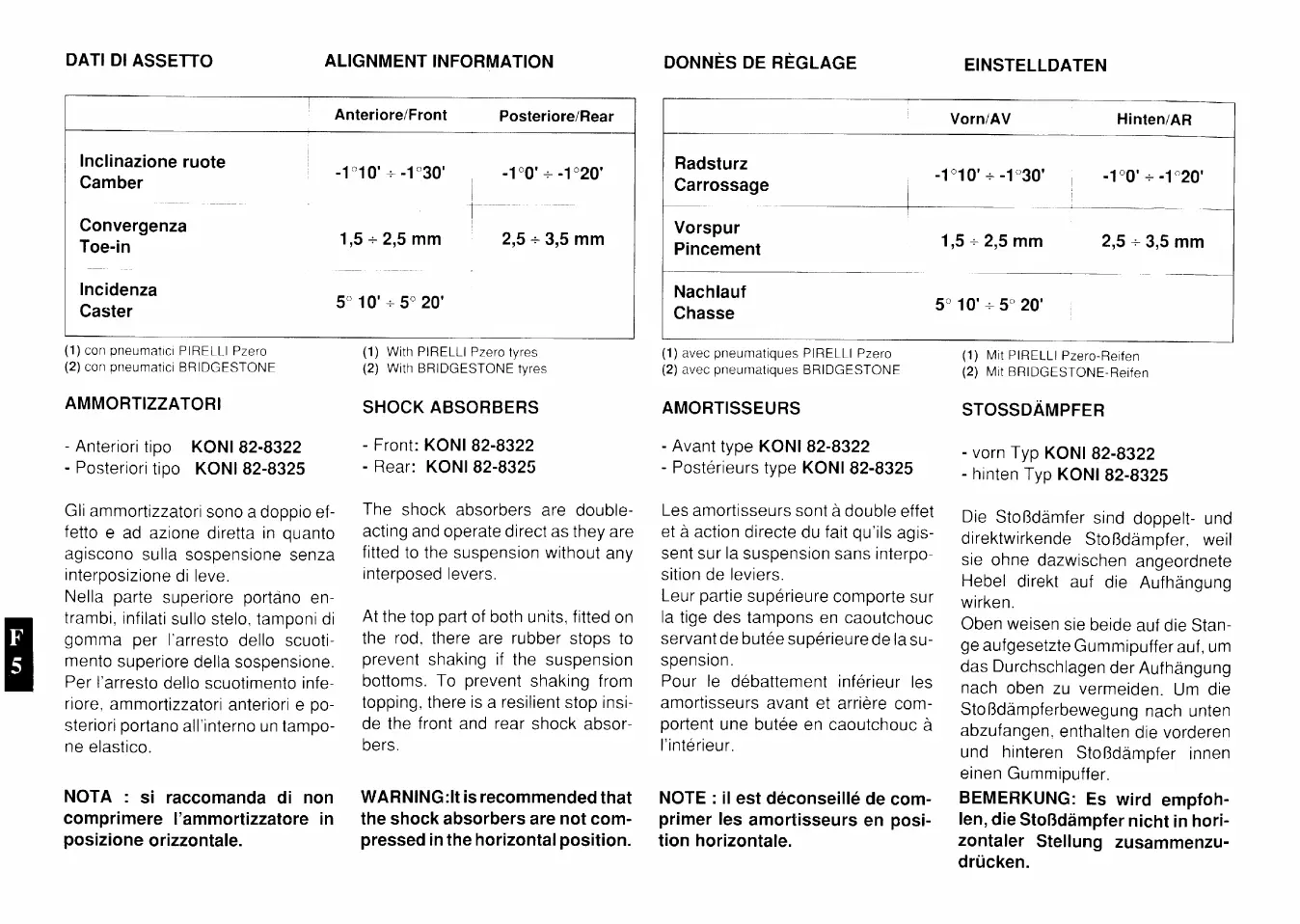 Ferrari F40 - Alignment Information; Shock Absorbers