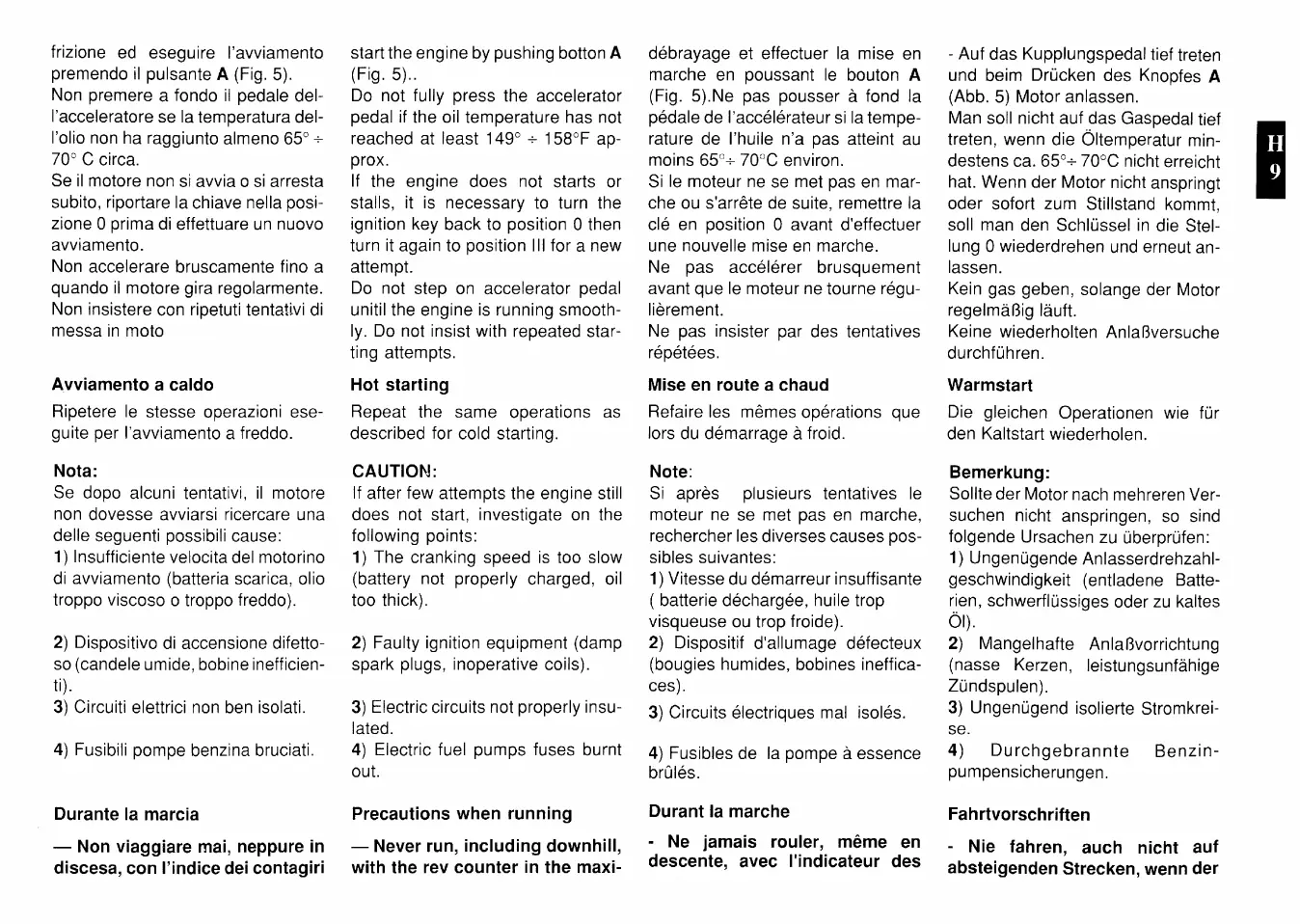 Ferrari F40 - Hot Starting; Precautions When Running