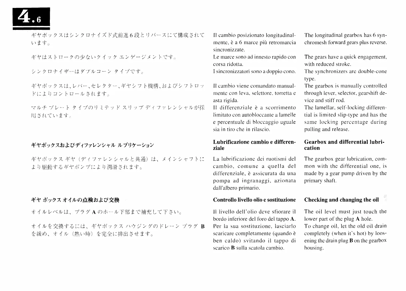 Ferrari F50 - Gearbox and Differential Lubrication; Checking and Changing the Oil