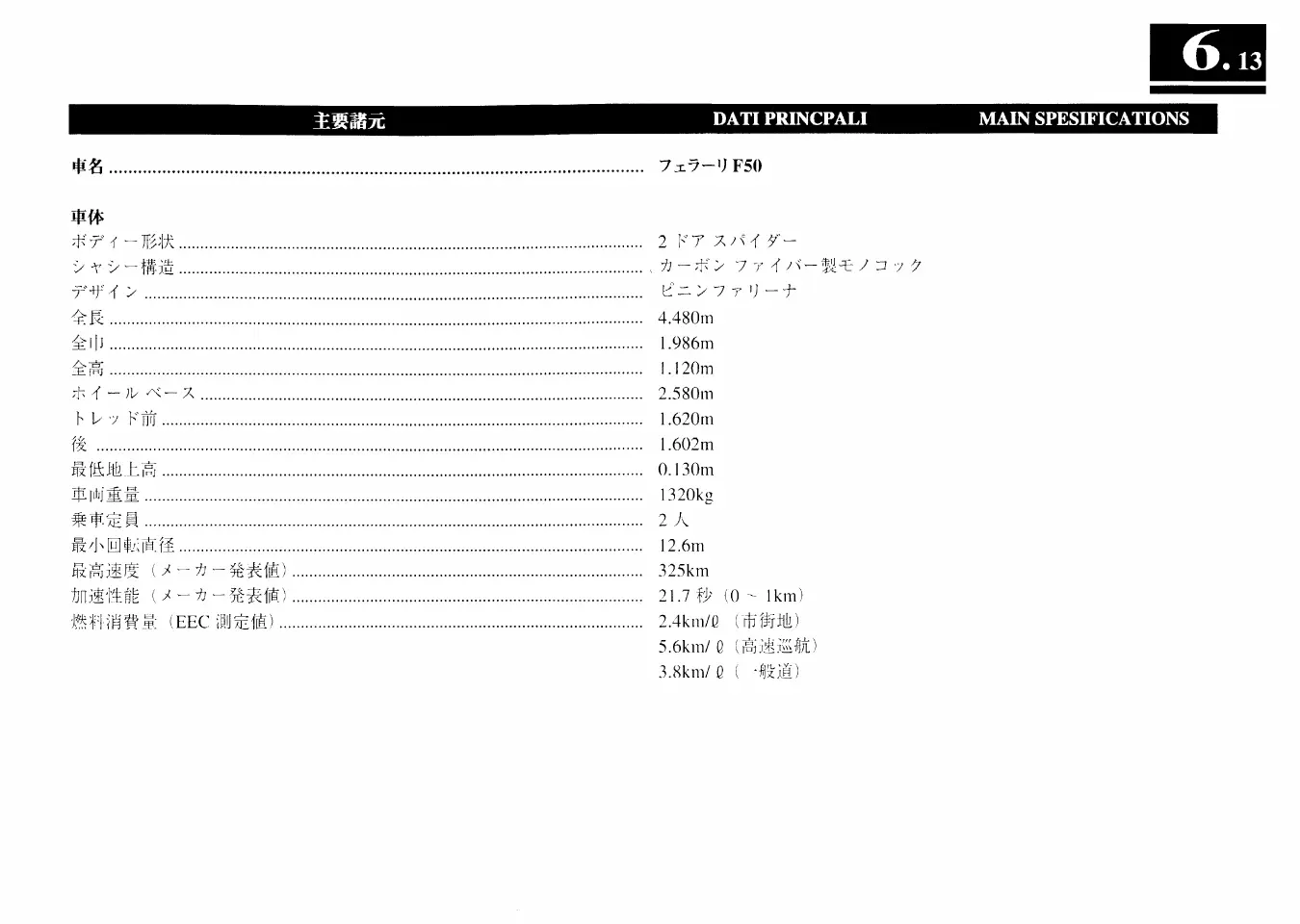 Ferrari F50 - Main Specifications