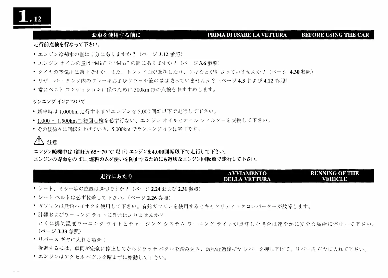 Ferrari F50 - Before Using the Car; Running of the Vehicle