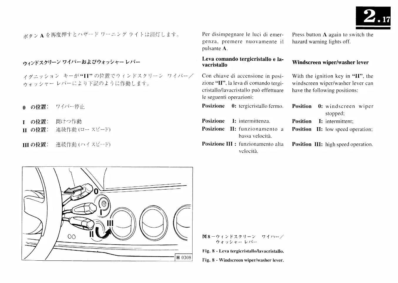 Ferrari F50 - Windscreen Wiper;Washer Lever