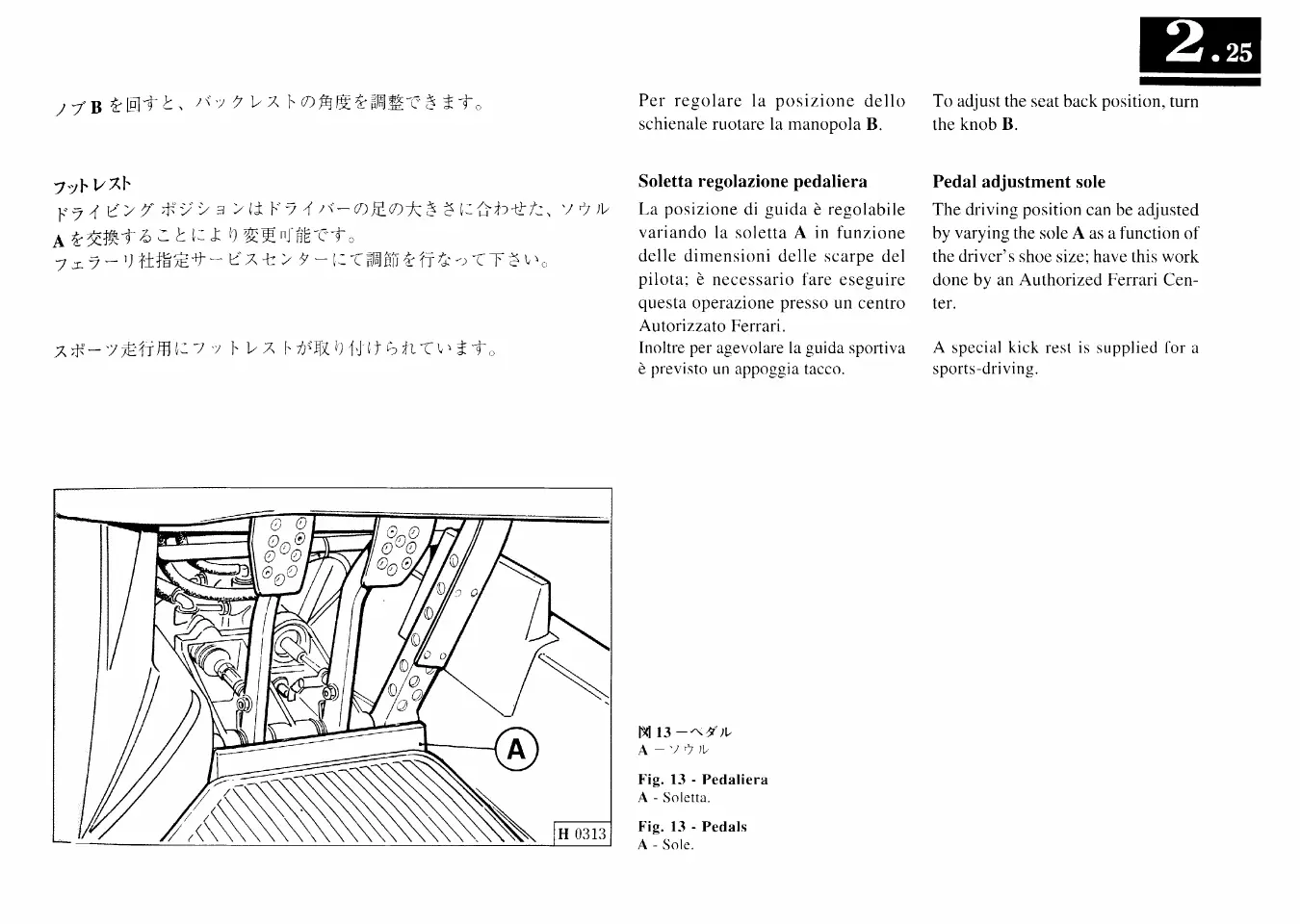 Ferrari F50 - Pedal Adjustment Sole