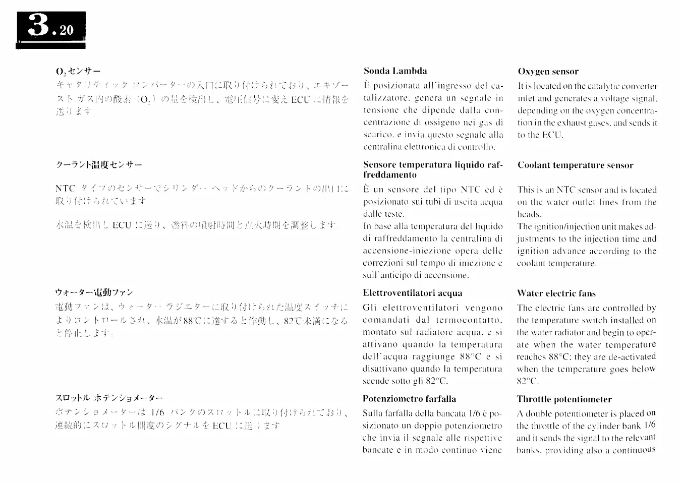 Ferrari F50 - Oxygen Sensor; Coolant Temperature Sensor; Water Electric Fans; Throttle Potentiometer