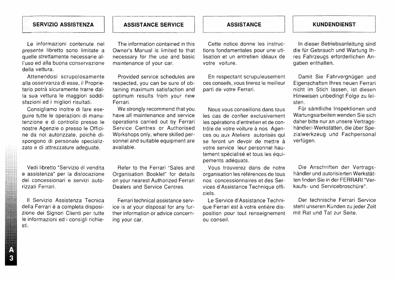Ferrari F512M - servizio assistenza; service and assistance; assistance; kundendienst
