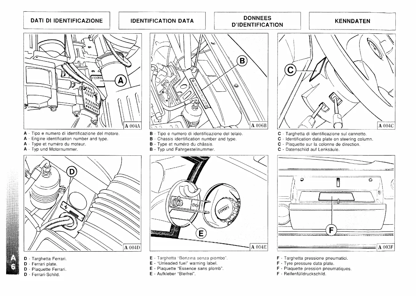 Ferrari F512M - dati di identificazione; identification data; plaques didentification; kenndaten