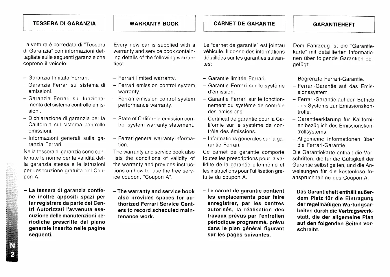 Ferrari F512M - tessera di garanzia; warranty card; carnet de garantie; garantieheft