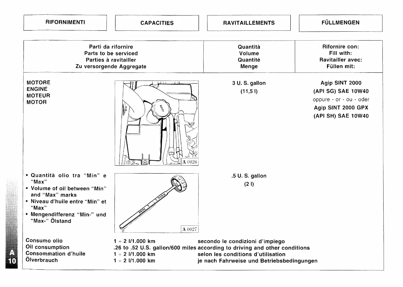 Ferrari F512M - rifornimenti; capacities; ravitaillements; füllmengen