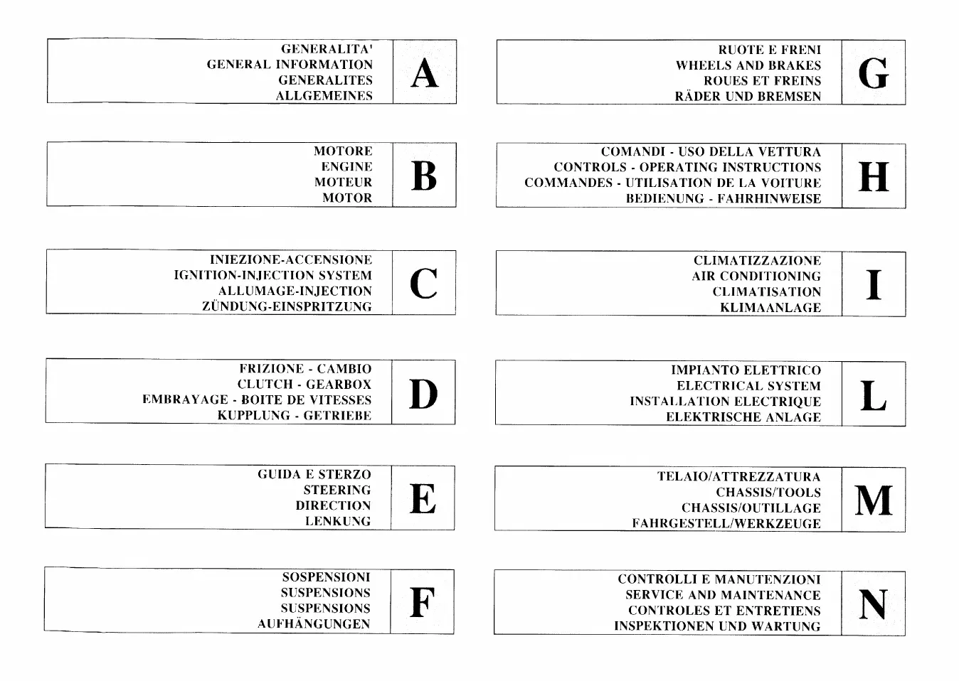 Ferrari F512M - INDICE; CONTENTS; INDEX; INHALTSVERZEICHNIS