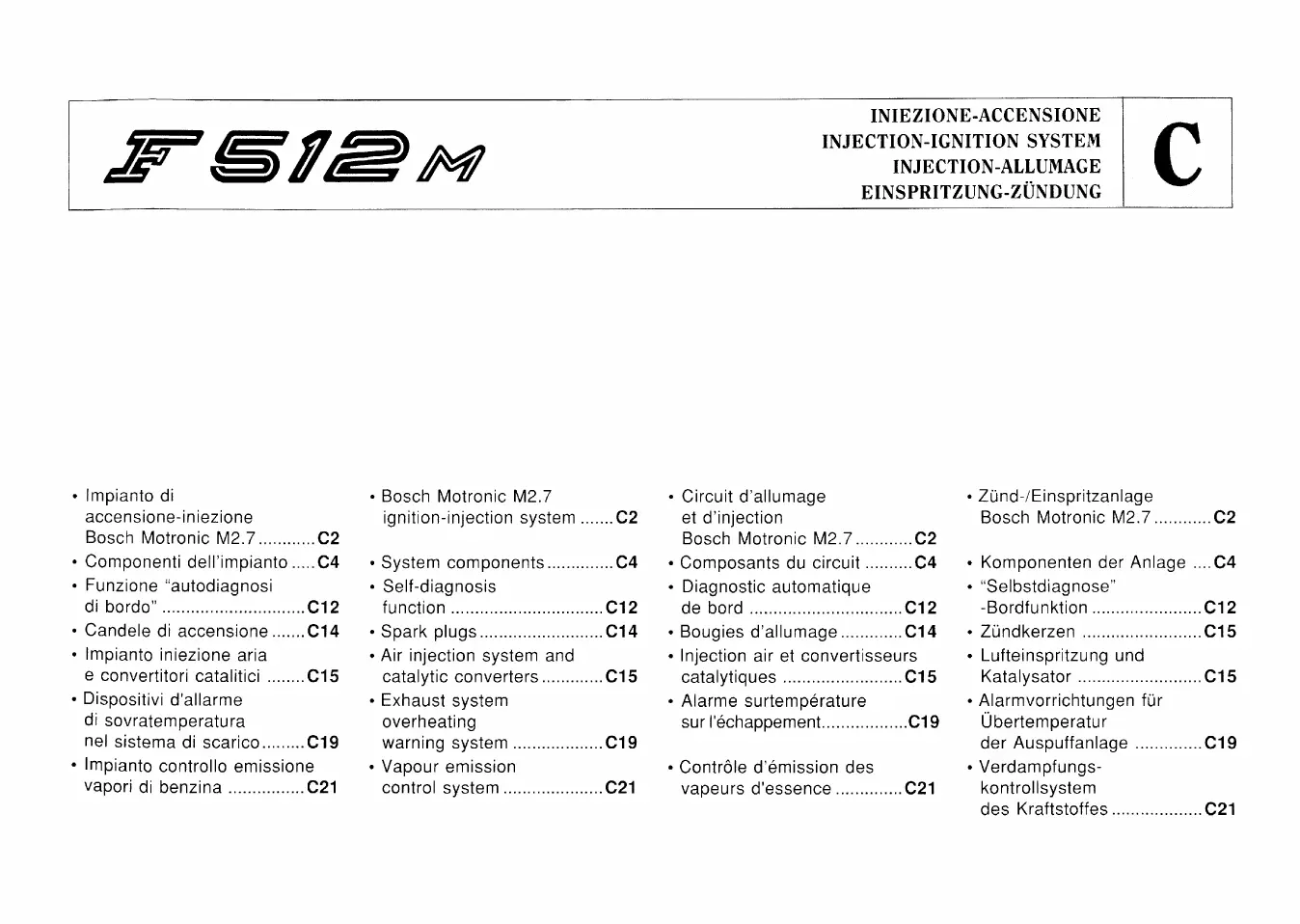 Ferrari F512M - C) INIEZIONE-ACCENSIONE; C) IGNITION-INJECTION SYSTEM; C) ALLUMAGE-INJECTION; C) ZUNDUNG-EINSPRITZUNG