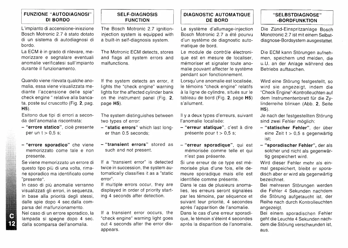 Ferrari F512M - funzione autodiagnosi di bordo; self-diagnosis function; diagnostic automatique de bord; selbstdiagnose bordfunktion