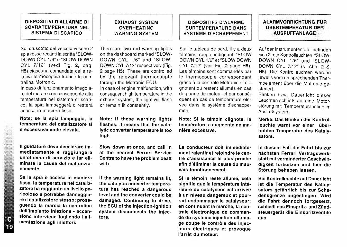 Ferrari F512M - dispositivi d’allarme di sovratemperatura nel sistema di scarico; exhaust system overheating warning system; alarme surtempérature sur léchappement; alarmvorrichtungen fur ubertemperatur der auspuffanlage
