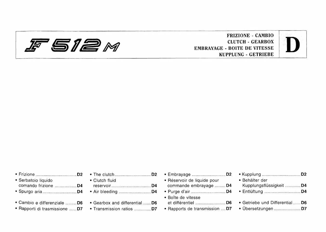Ferrari F512M - D) FRIZIONE-CAMBIO; D) CLUTCH-GEARBOX; D) EMBRAYAGE-BOITE DE VITESSES; D) KUPPLUNG-GETRIEBE