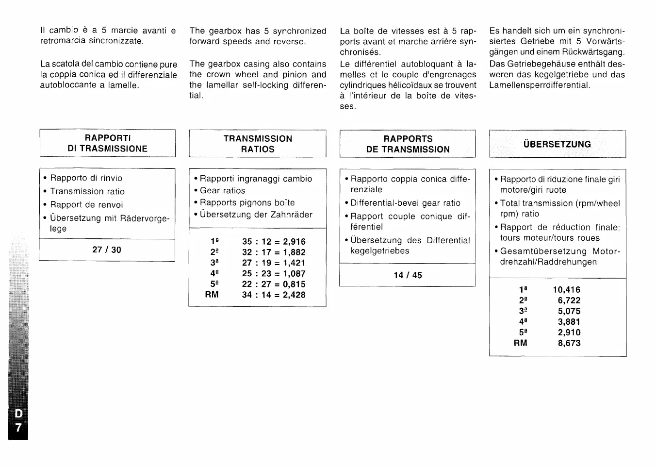 Ferrari F512M - rapporti di trasmissione; transmission ratios; rapports de transmission; übersetzungen
