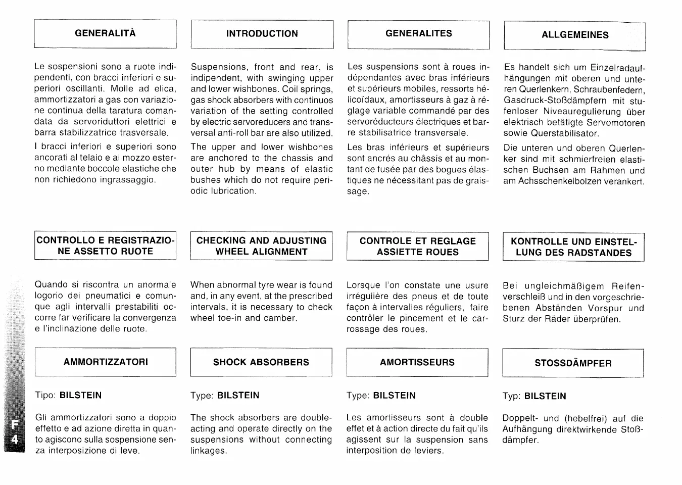 Ferrari F512M - generaiità; controllo e registrazione assetto ruote; ammortizzatori; introduction