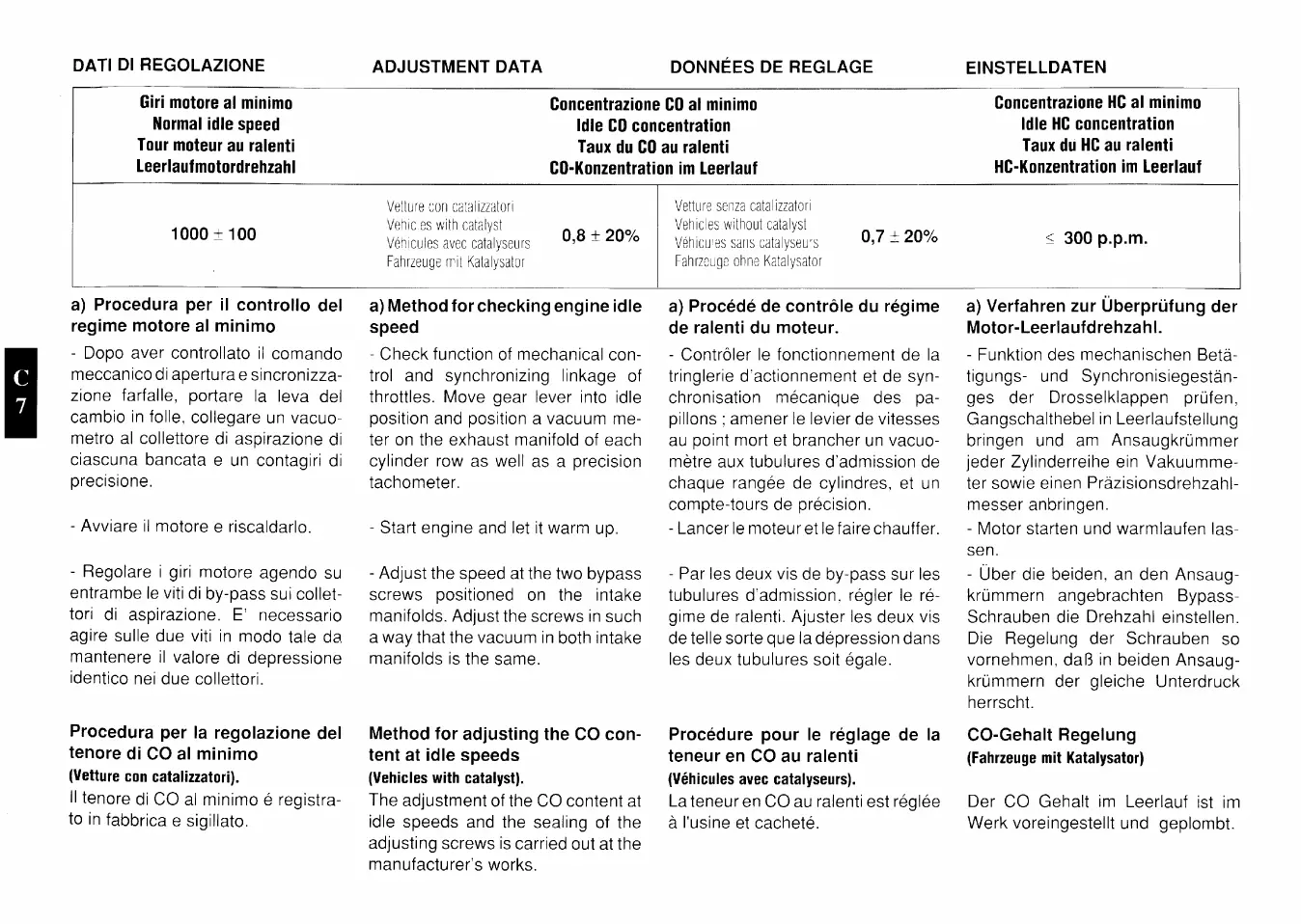 Ferrari Testarossa - Adjustment Data