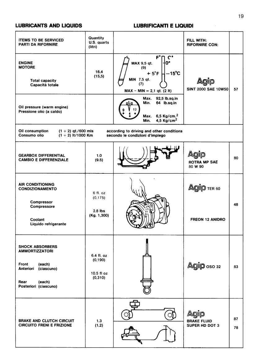 Ferrari Testarossa - LUBRICANTS AND LIQUIDS