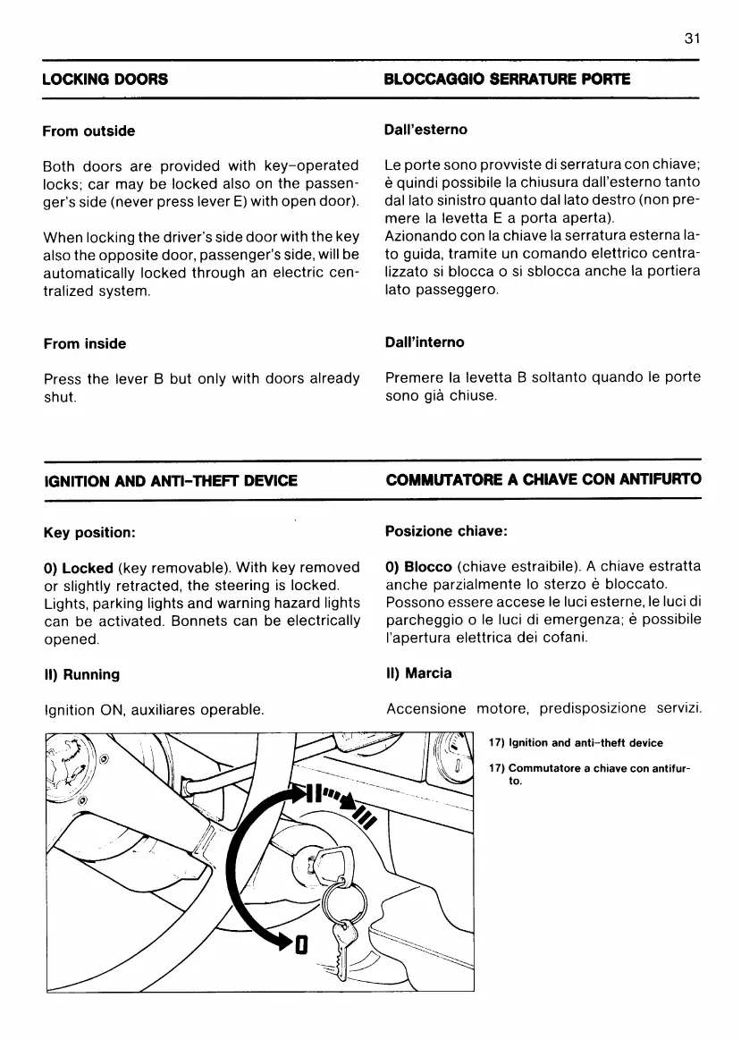Ferrari Testarossa - Locking Doors; Ignition and Anti-Theft Device