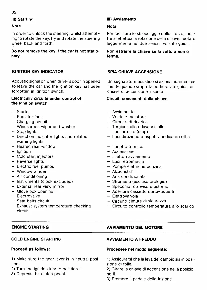 Ferrari Testarossa - Ignition Key Indicator; Cold Engine Starting
