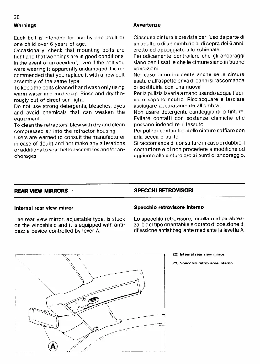Ferrari Testarossa - Internal Rear View Mirror; Warnings on Seat Belts