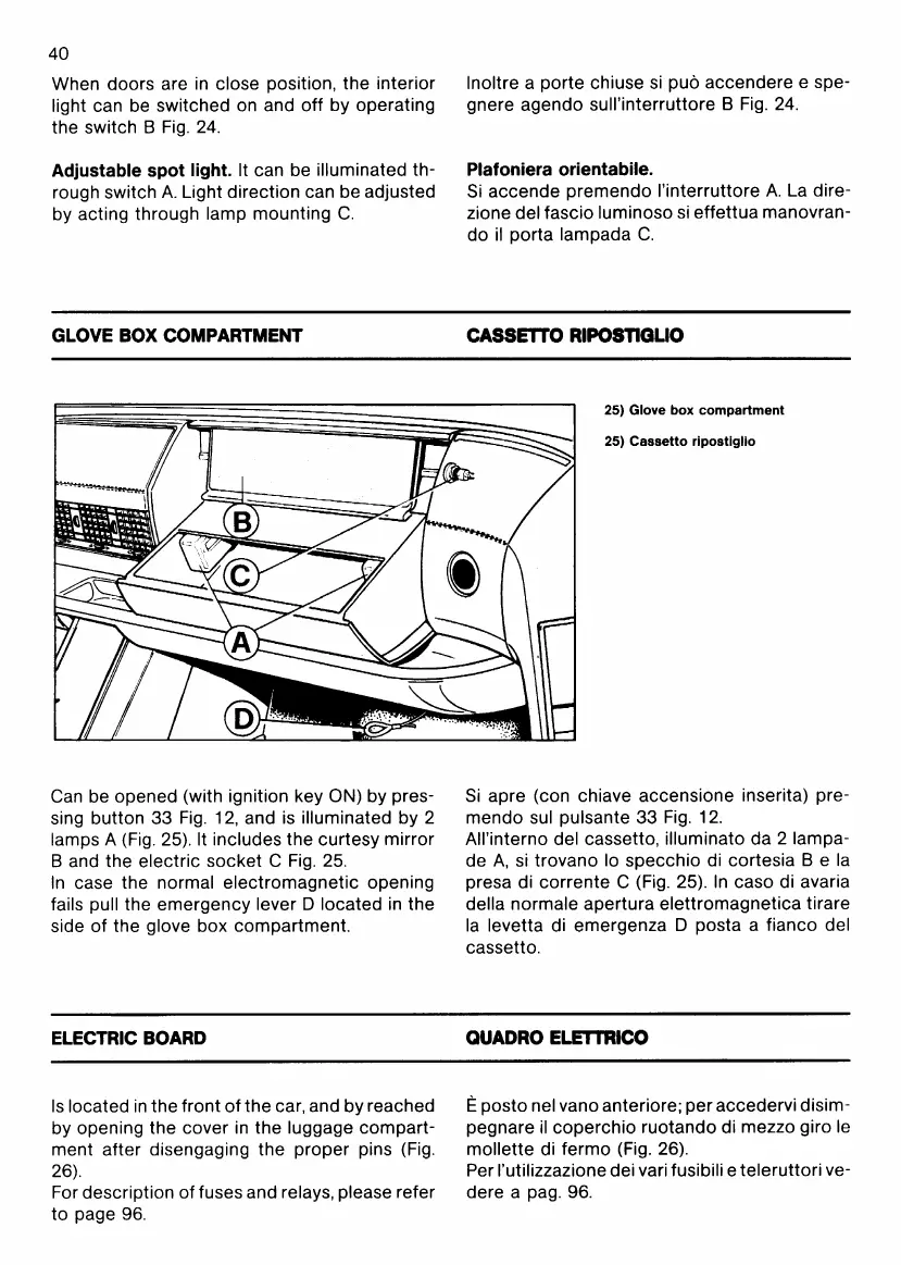 Ferrari Testarossa - Glove Box Compartment; Electric Board; Adjustable Spot Light