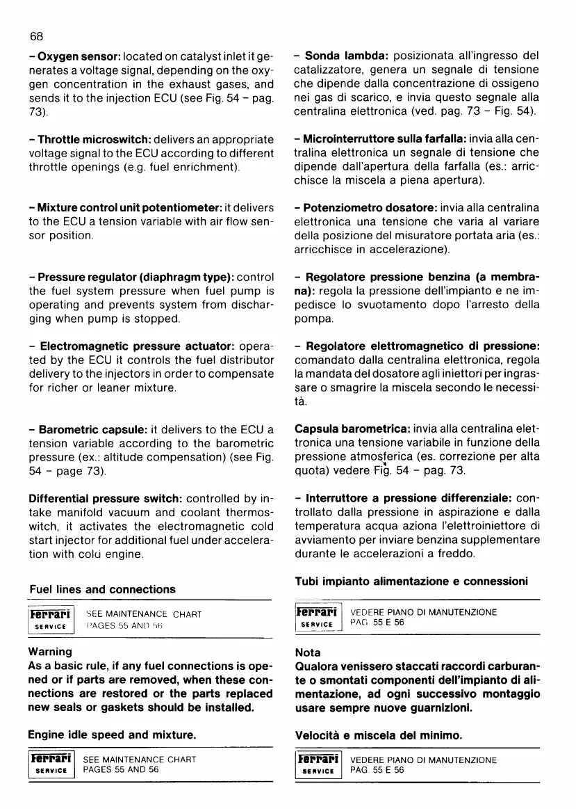 Ferrari Testarossa - Oxygen Sensor; Throttle Microswitch; Barometric Capsule; Differential Pressure Switch