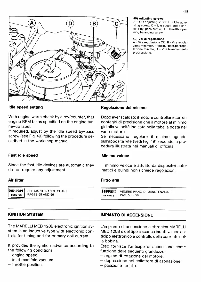 Ferrari Testarossa - Ignition System; Idle Speed Setting; Fast Idle Speed