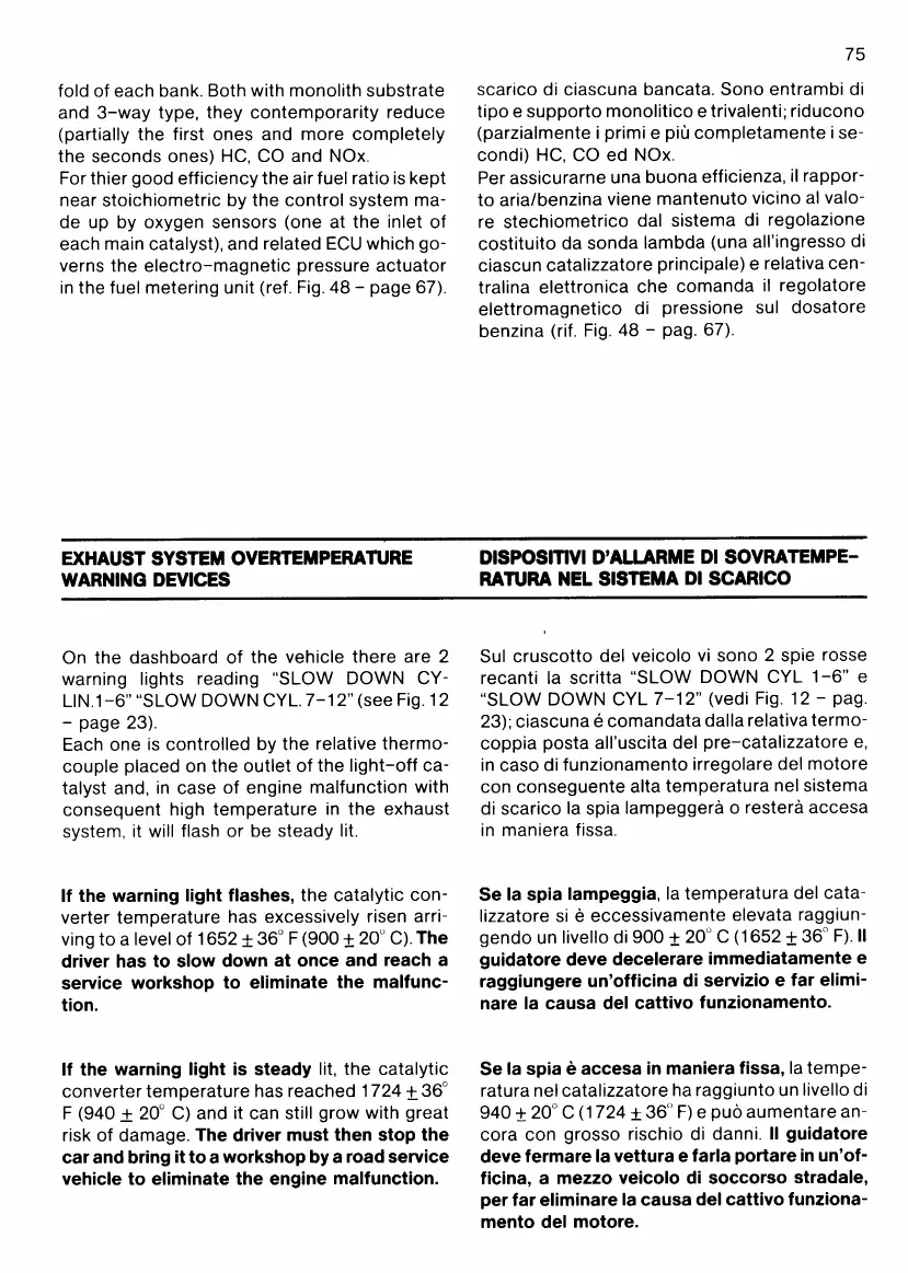 Ferrari Testarossa - Exhaust System Overtemperature Warning Devices