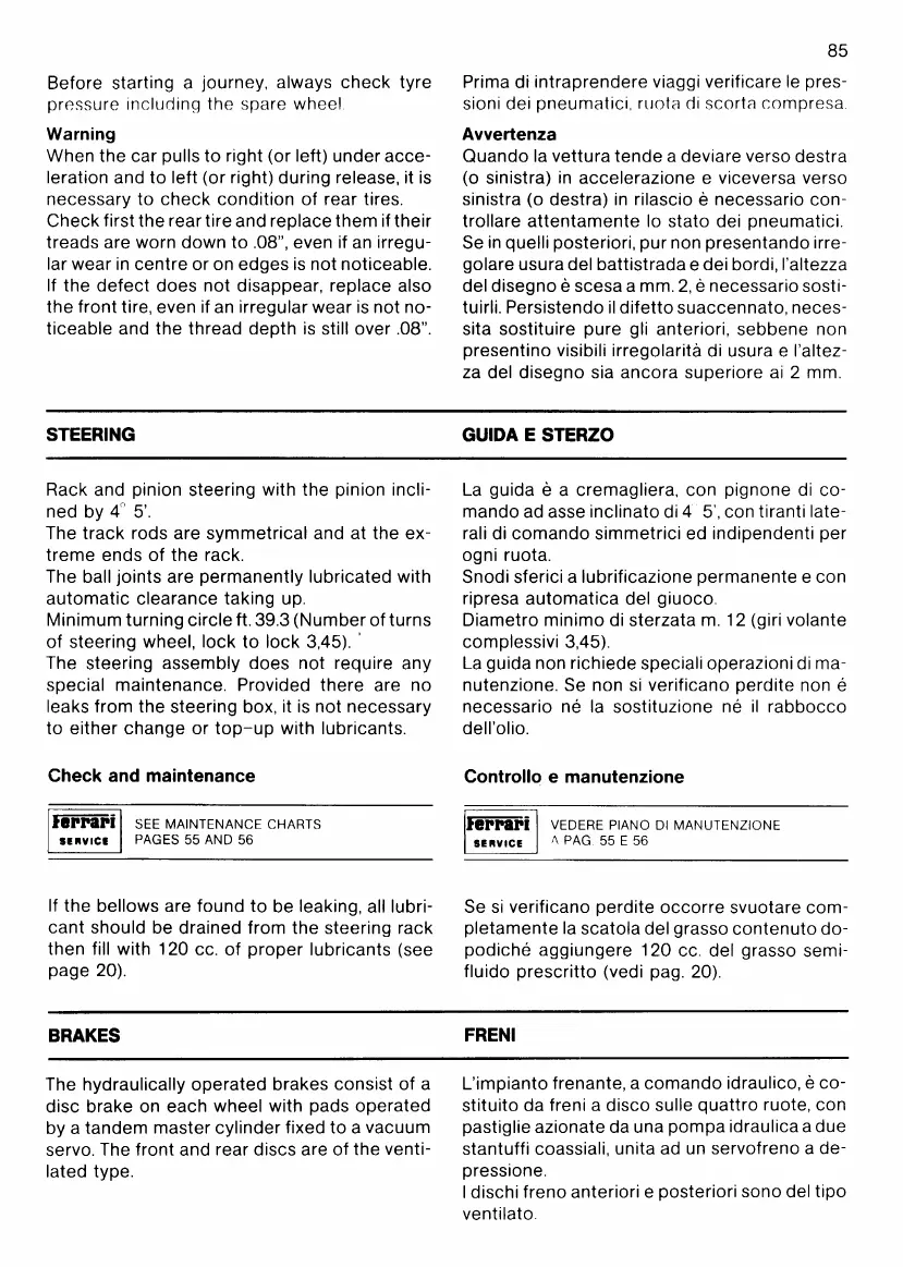 Ferrari Testarossa - Steering; Brakes