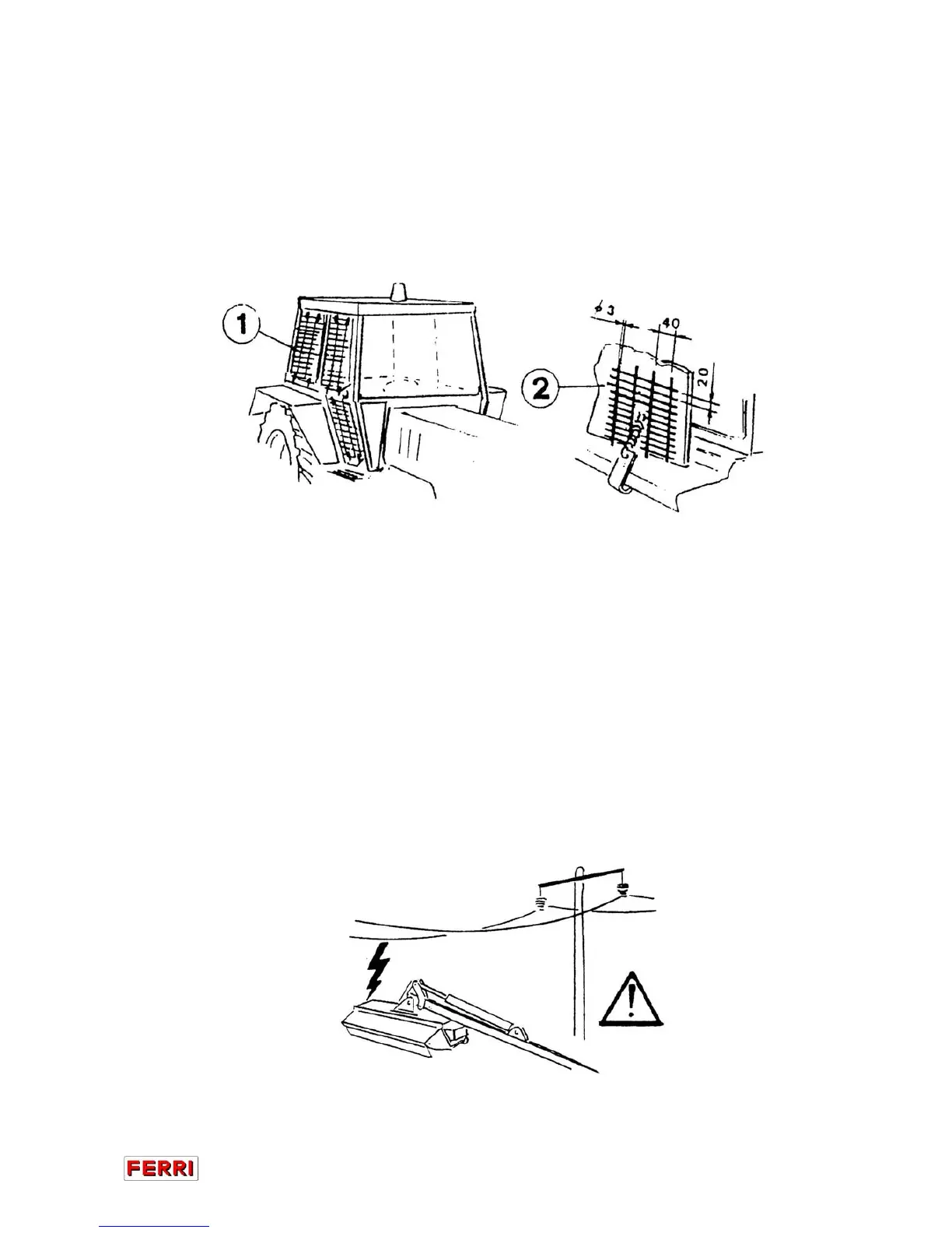 two protection grills (1) to the operator’s cab, so that the debris thrown by the