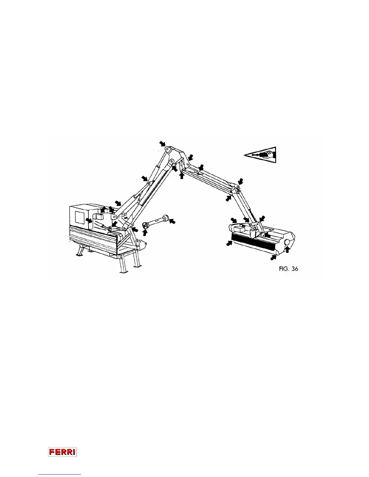 - Every 8 hours of operation, grease the parts shown in FIG. 36; regularly: