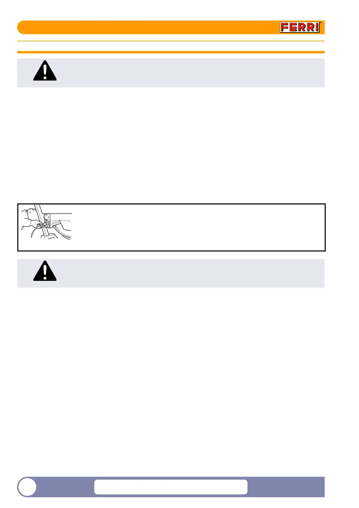► Before working on the hydraulic system, lower the end tool, release all the pressure and turn o the tractor.