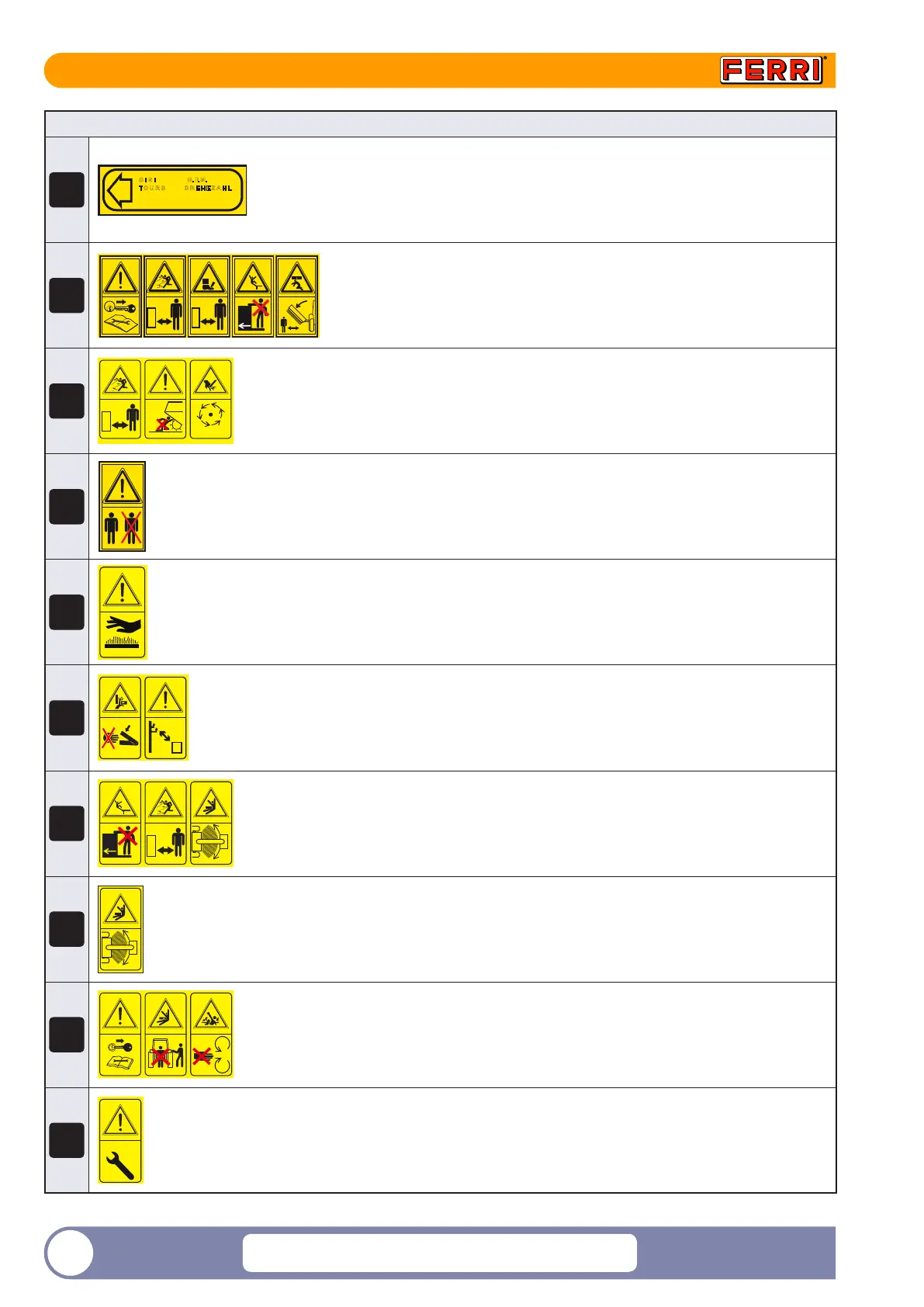 Single decal with a series of warning labels described above.
