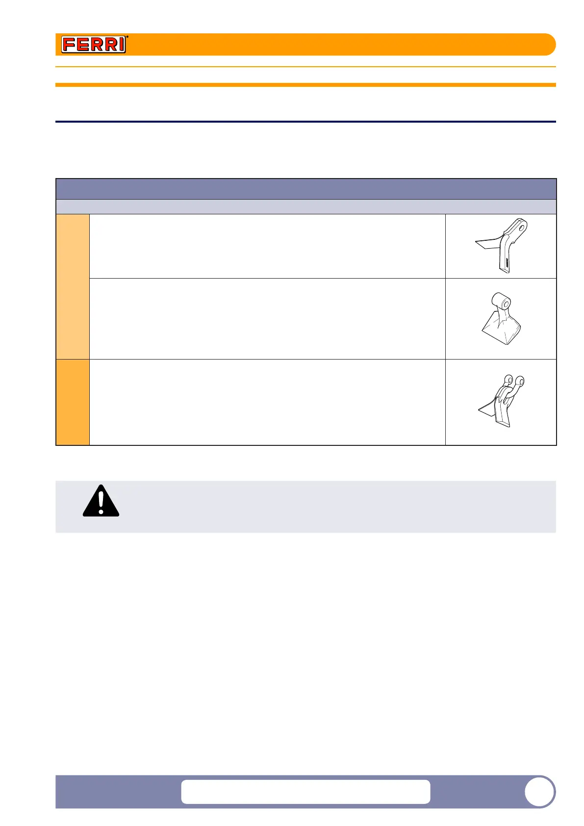 The following table lists the cutting ails that may be tted on the machine and their respective characteristics.