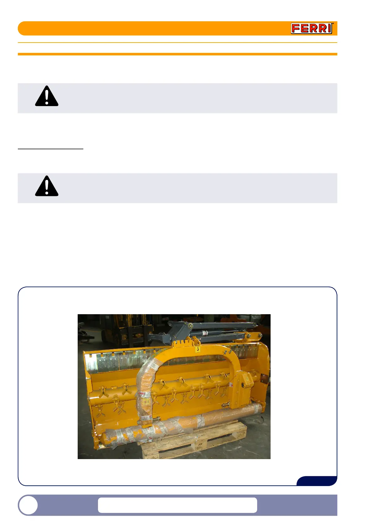 To perform the transport and assembly operations of the machine safely, use a fork lift truck and/or lifting device/hoist