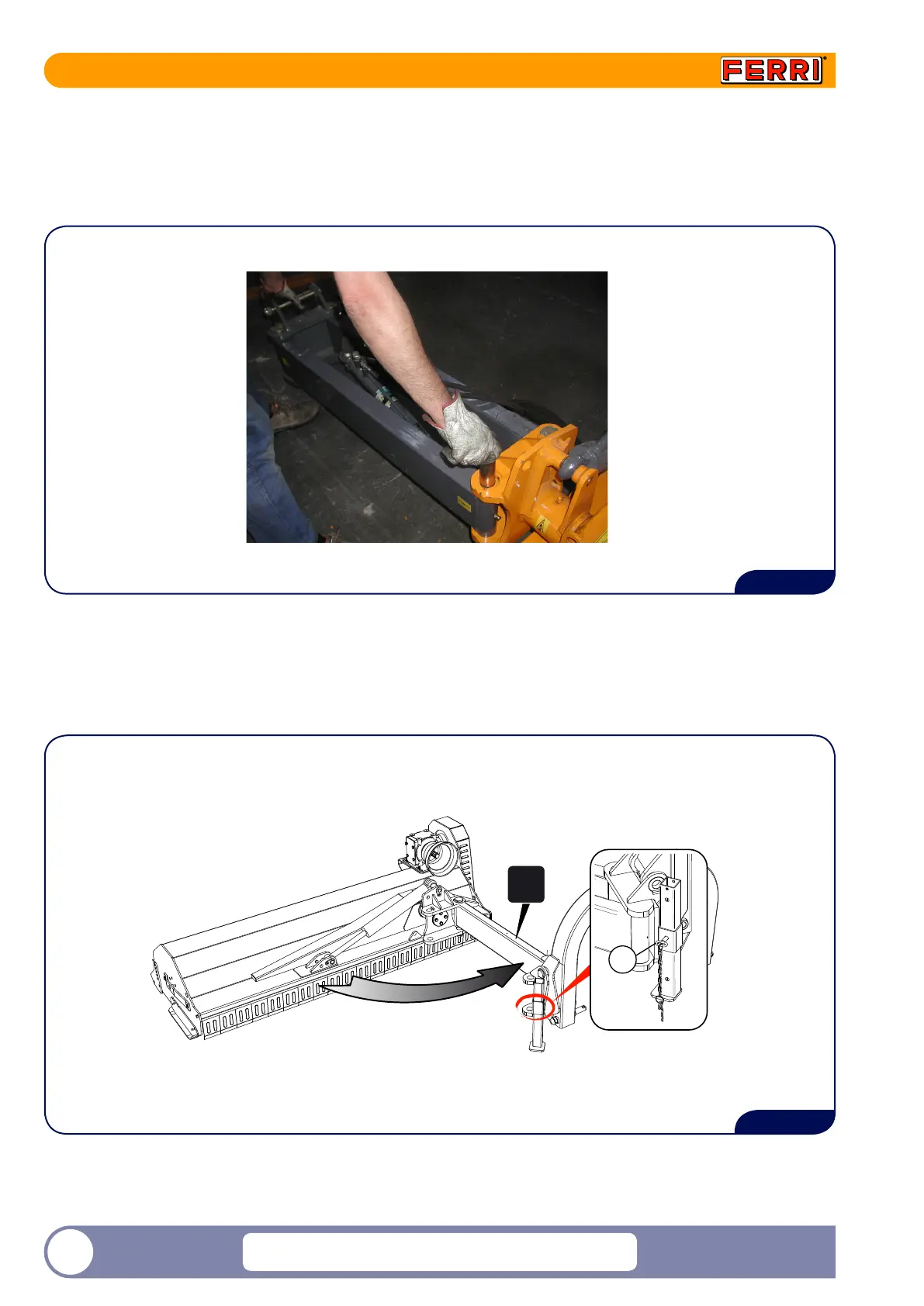 12) Attach the three-point coupling of the machine. Lift the arc attaching it using a belt (as indicated in the gure)