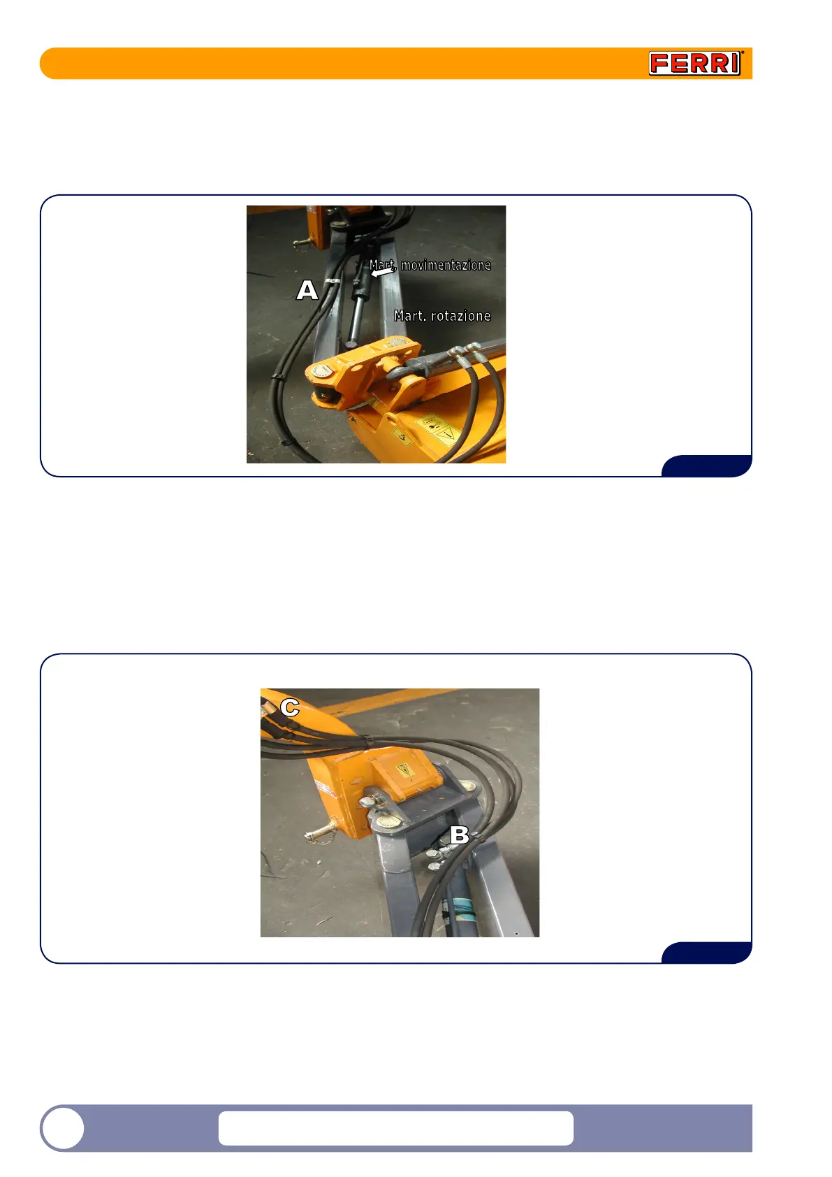 15) Activate the rotation hydraulic ram hoses as in the gure and x them to point “A” of the arm.