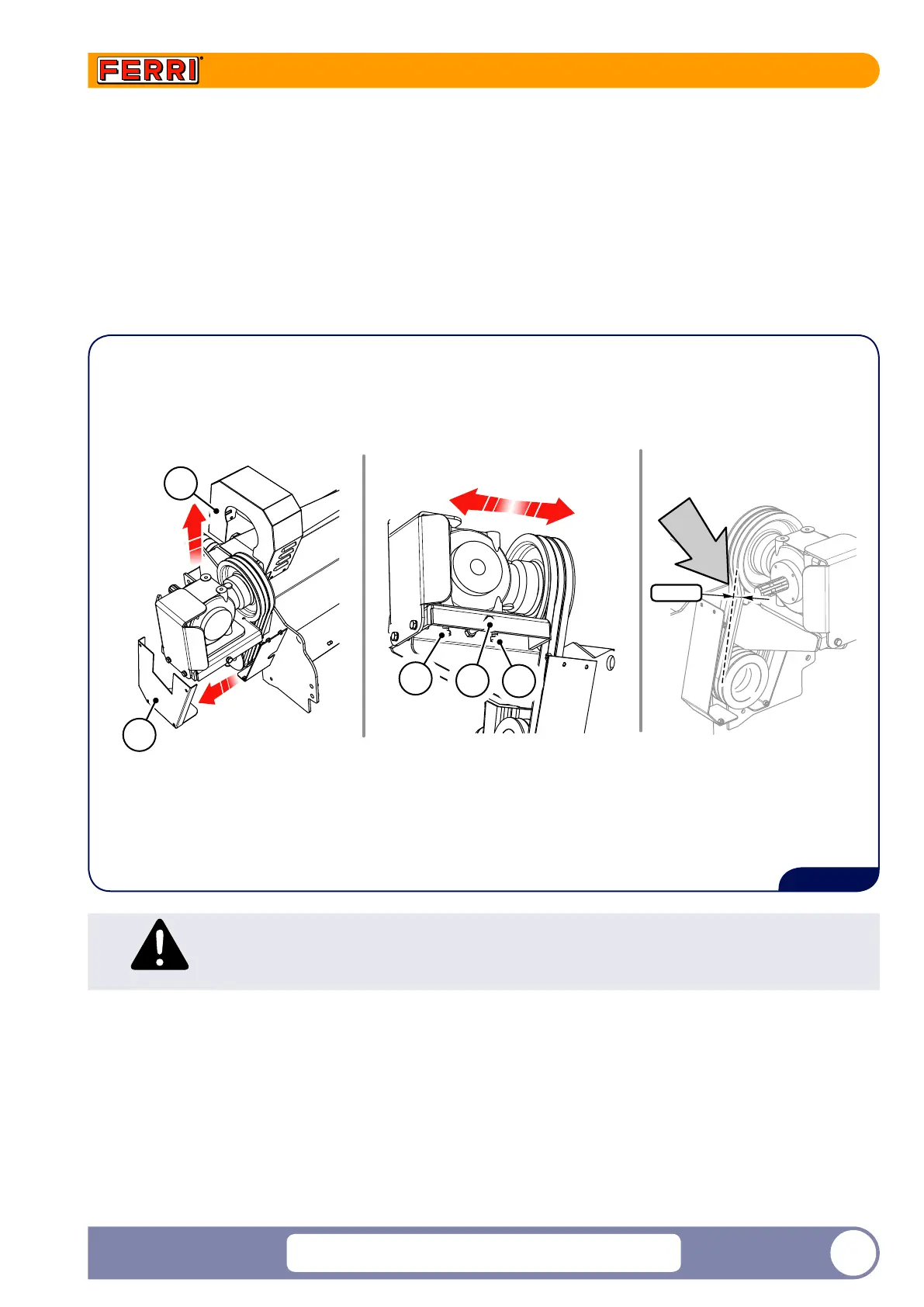 ► Once the operation is nished block the 4 fastening screws of the gearbox (2) and t the belt protective casings