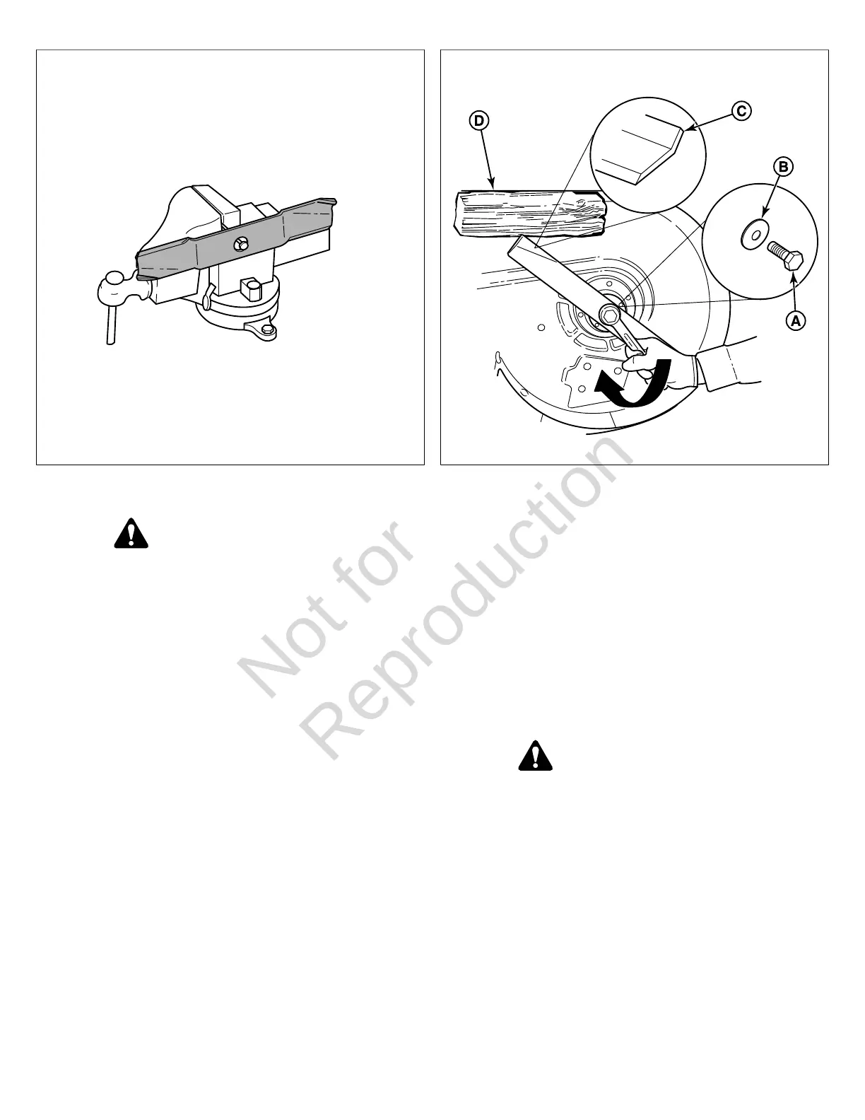 2. Set a wooden block (D) between the mower blade and