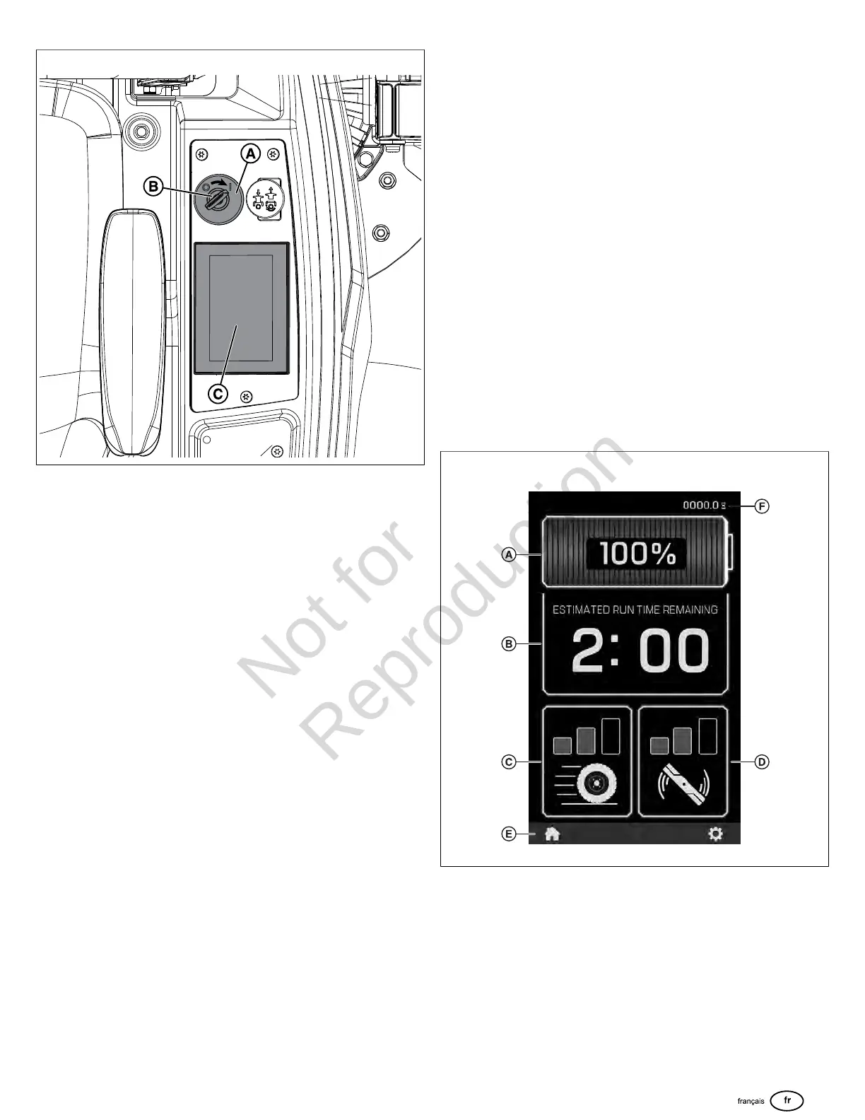 • Compteur d’heures (F) - Affiche le nombre total d’heures