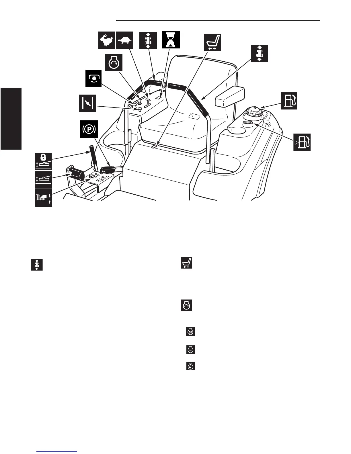 The information below briefly describes the function of individual controls. Starting, stopping, driving, and