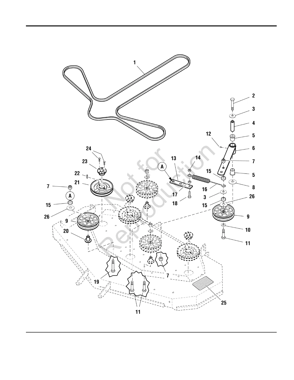 61" Mower Deck - Pulleys, Belt & Idler Arm