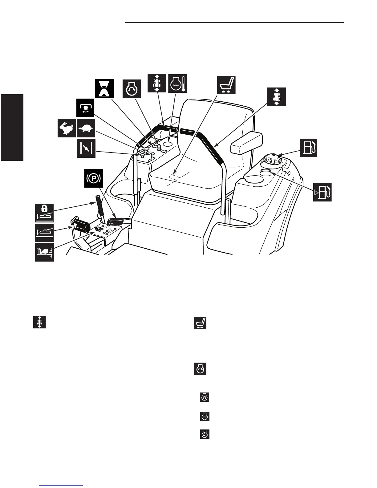 The information below briefly describes the function of individual controls. Starting, stopping, driving, and
