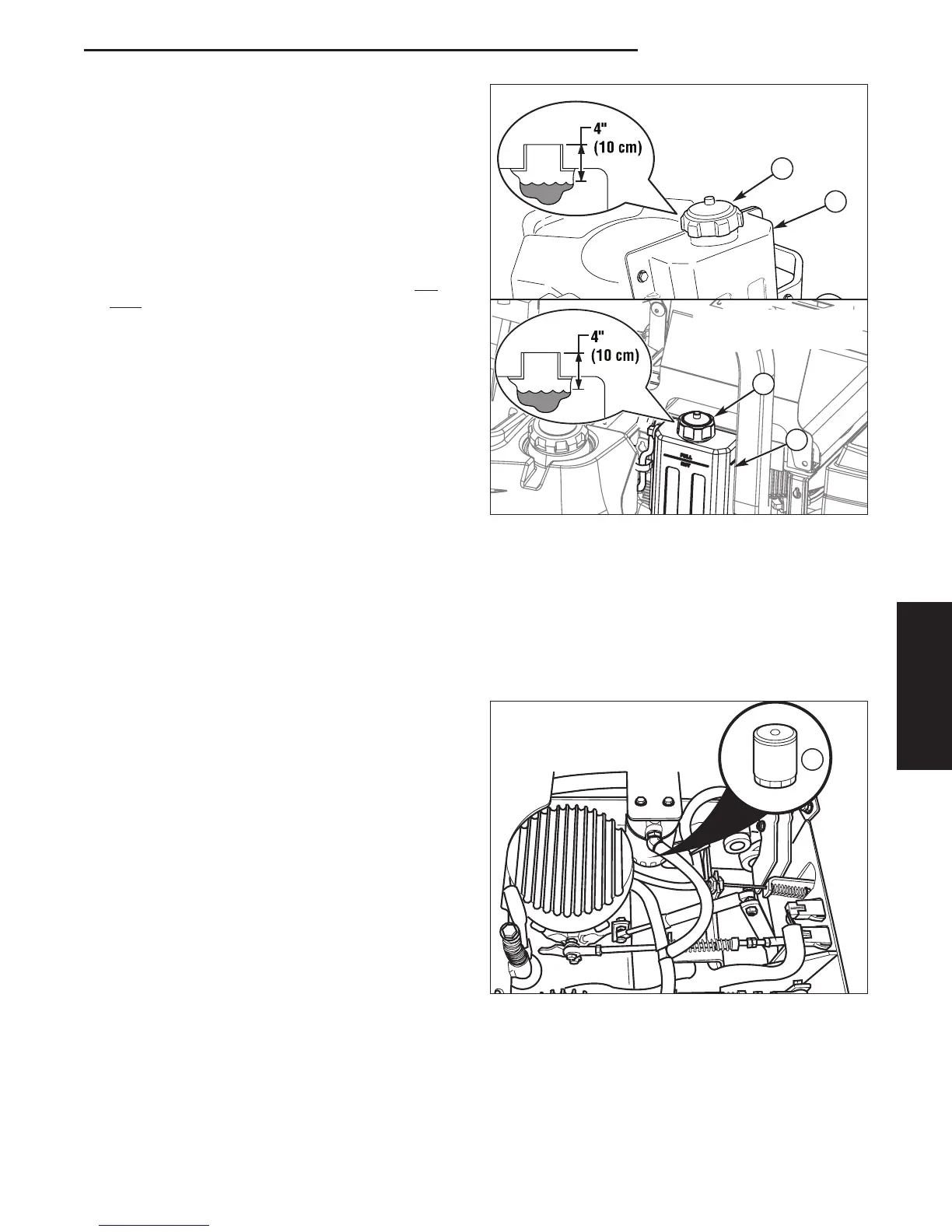 4” (10 cm) below top of the filler neck.