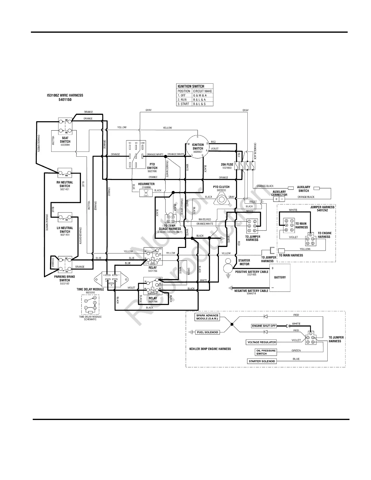 Electrical Schematic - Ignition Grounding Circuit/Operator Presence - Kohler 30HP